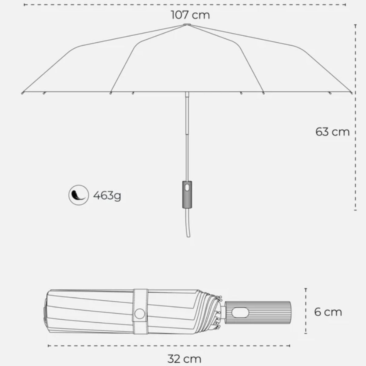 Der Taschenschirm besitzt einen klar geformten, säulenförmigen Griff, der angenehm in der Hand liegt. Zusätzlich sorgt das sturmfeste Gestell mit 10 Fiberglasstreben dafür, dass der Taschenschirm auch bei Wind stabil bleibt. Dadurch entsteht ein besonders windfester Taschenschirm, der für den täglichen Einsatz geeignet ist.